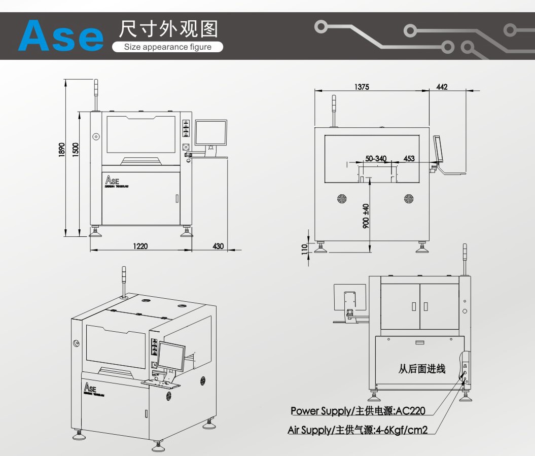 機器外形尺寸 | 1220(L)X1355(W)X1500(H)mm | |