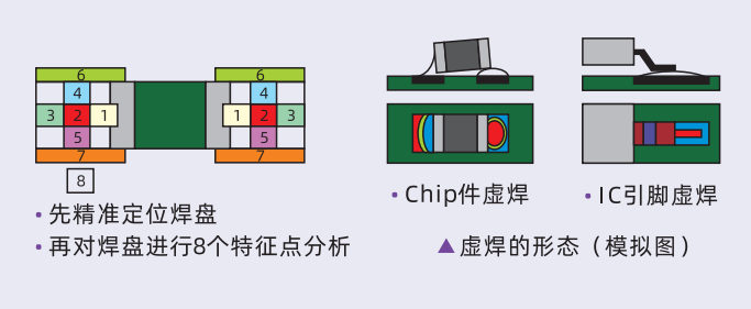 定位,可無(wú)視板上絲印、印制線等的干擾,輕松實(shí)現(xiàn)焊盤(pán)定位,保障檢測(cè)準(zhǔn)確性;
