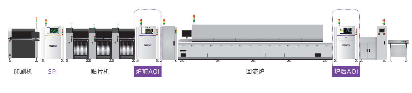 明銳在線AOI——V5000系列 ,適 用于SMT爐 前爐后的高精度 、高速度在線檢查,擁行業(yè)領(lǐng)先的定位技術(shù)及矢量特征檢測(cè)算法 。